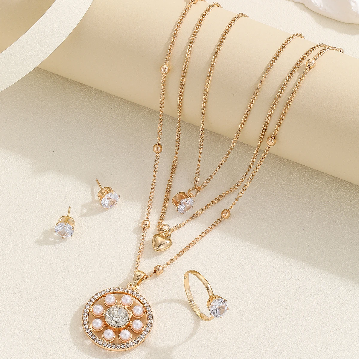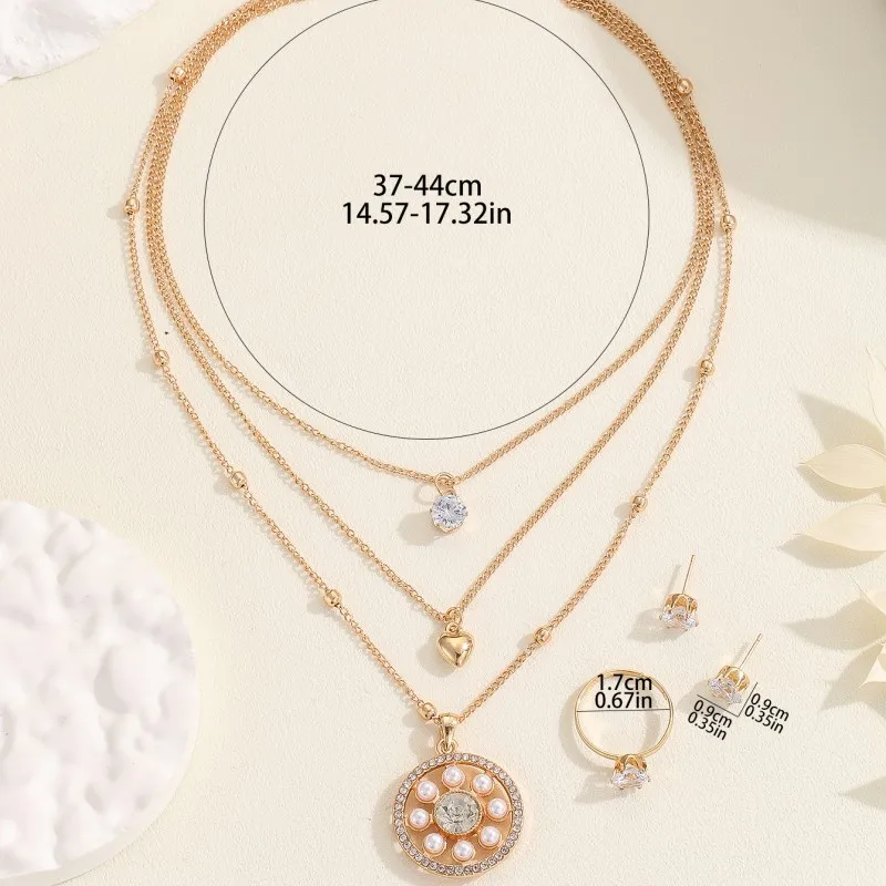 Fashion Sense Pearl Rhinestone Multi-Layers Personalised Gold Plated Necklace Designer Necklace Bracelet Earrings Set for Women